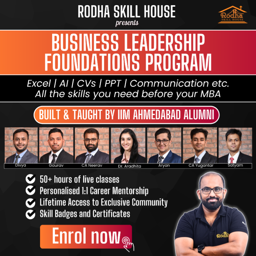 Master the essential skills you need before MBA, from Excel, PowerPoint, AI Tools, Communication, and CV Building to Case Competitions, Placements, and MBA Fundamentals